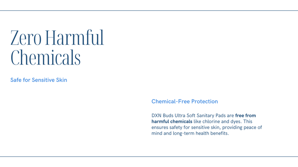 Yes, DXN Buds are chemical-free sanitary pads made without chlorine, dyes, or harsh additives, making them safe for regular use.