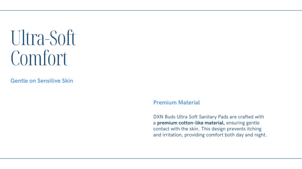 DXN Buds is crafted with premium cotton-soft sanitary pad material that feels gentle on the skin. It helps prevent irritation, itching, and rashes, making it one of the best sanitary pads for sensitive skin.